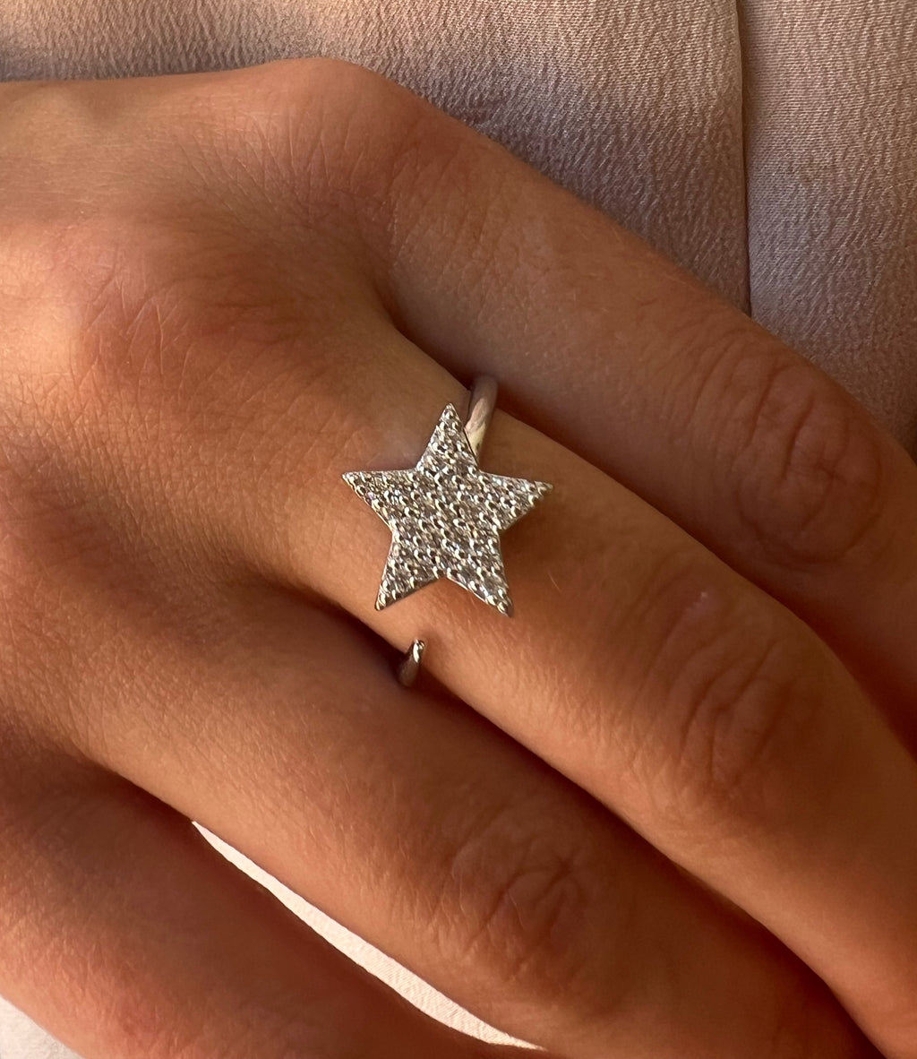 Timeless Eternal Love Star Ring Rock Crystal Silver